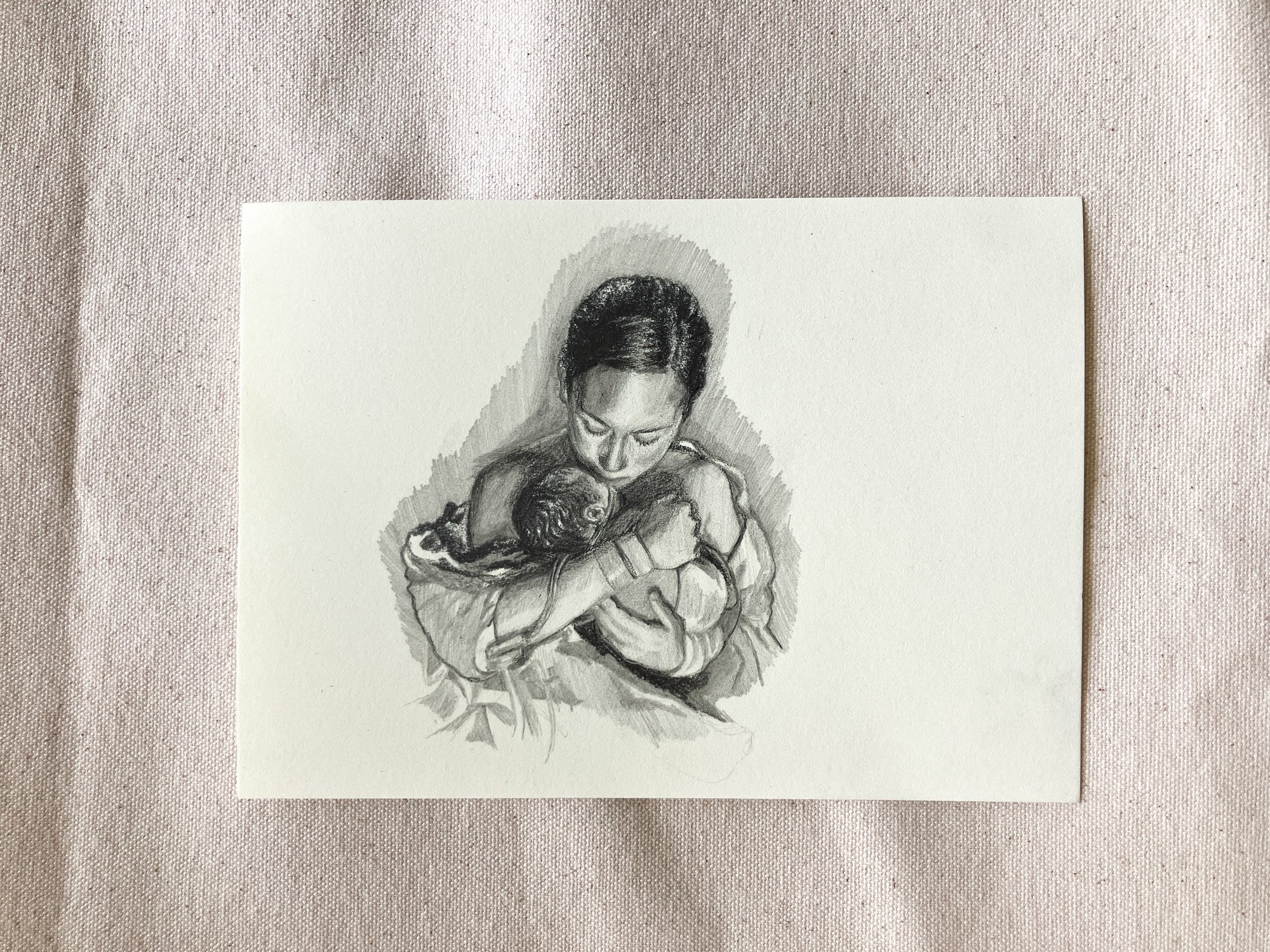 Custom drawing of mother and child - 5" x 7" Graphite on paper - Please email a photograph that your would like turned into a drawing along with your birth story (if you wish to share) to [email protected].